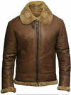 Brown B3 RAF Bomber Aviator Pilot Flying Fur Shearling Sheep Leather Jacket